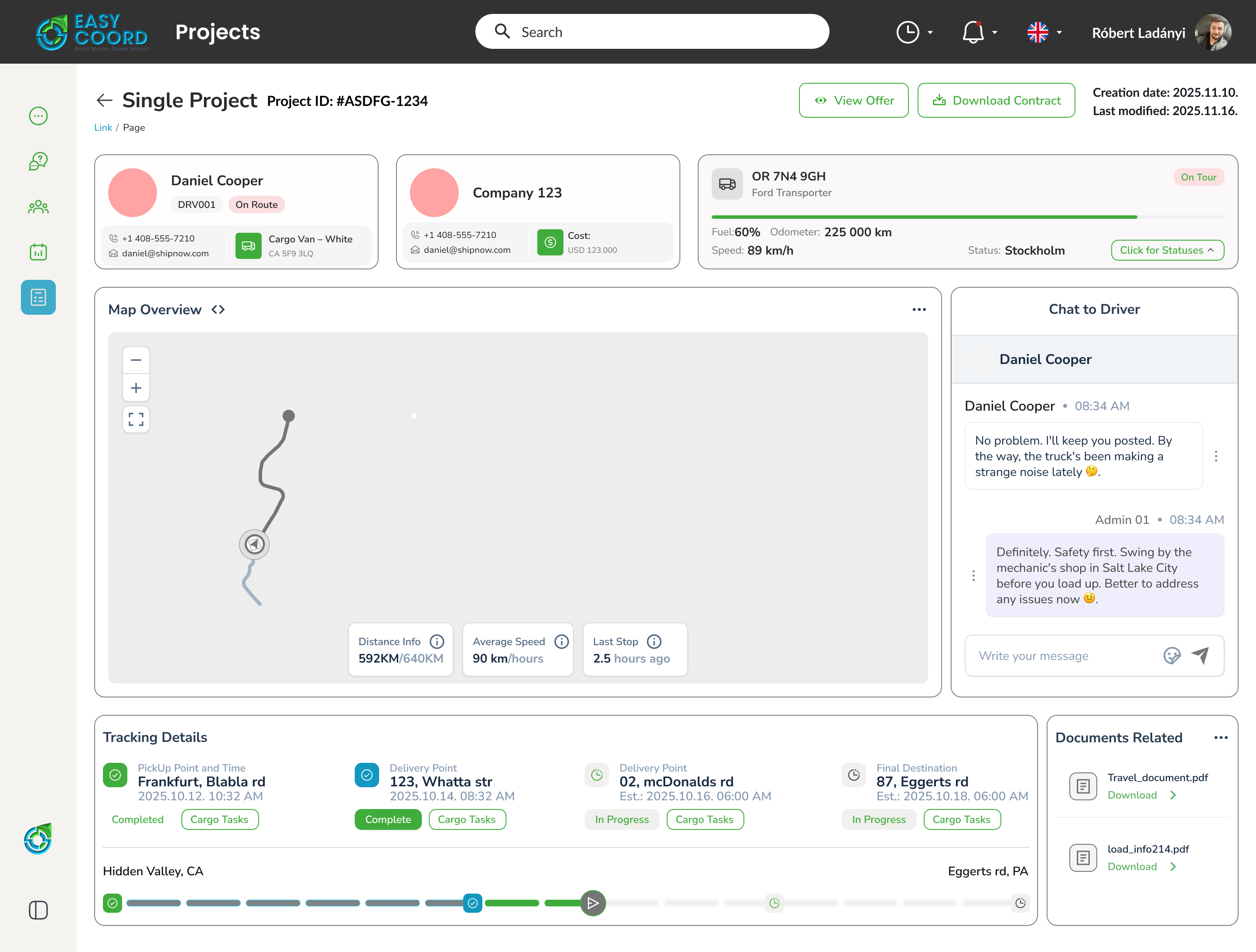 A beépített kommunikációs funkcióval közvetlen kapcsolatban maradhatsz a sofőrrel, így az információcsere gyors, visszakövethető és dokumentált. Minden változás, üzenet és státusz egy adott túrához kapcsolódik, így nincs elveszett információ.